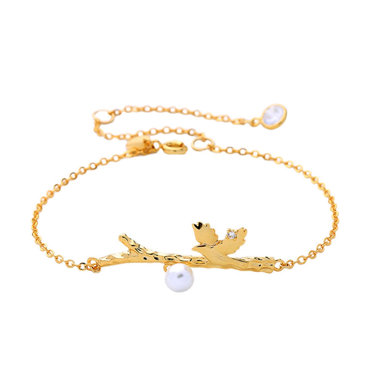 Bring a touch of elegance to your looks with this gold-plated bracelet that features a nature-inspired design and an pearl accent.