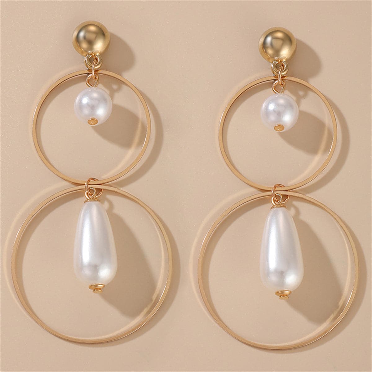 Elegant pearl encapsulate these drop earrings featuring double-hoop and 18k gold-plated frames.