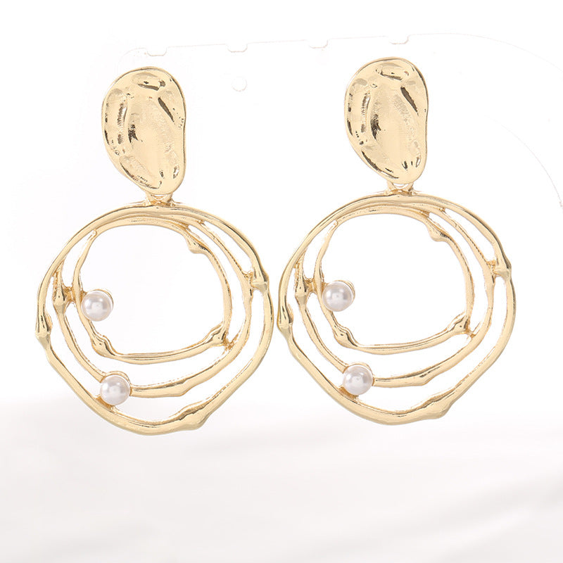 Elegant drop earrings featuring shining pearls in a layered hoop shape and a shining 18k gold-plated finish.