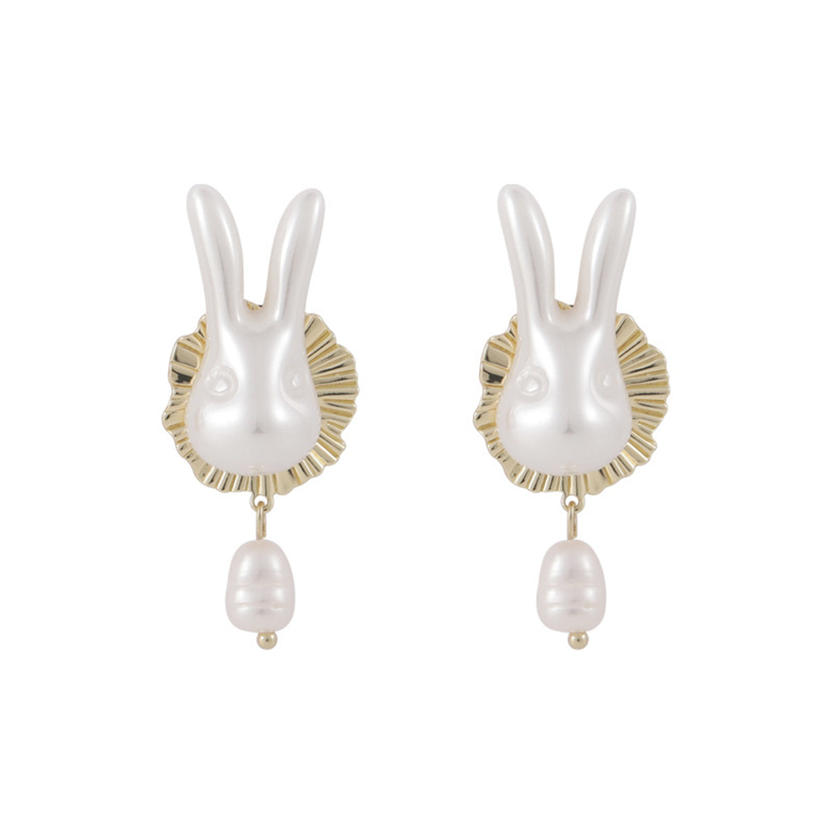 Add some fun to your jewelry collection with these pearl earrings that feature a playful detail of a rabbit.