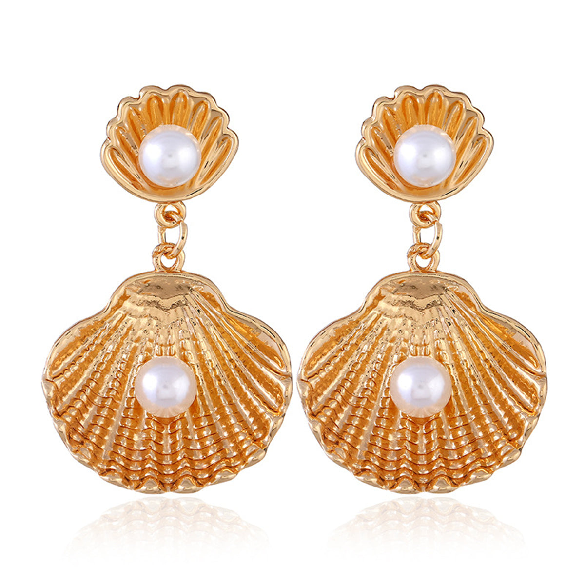 Pearl & 18K Gold-Plated Shell Drop Earrings