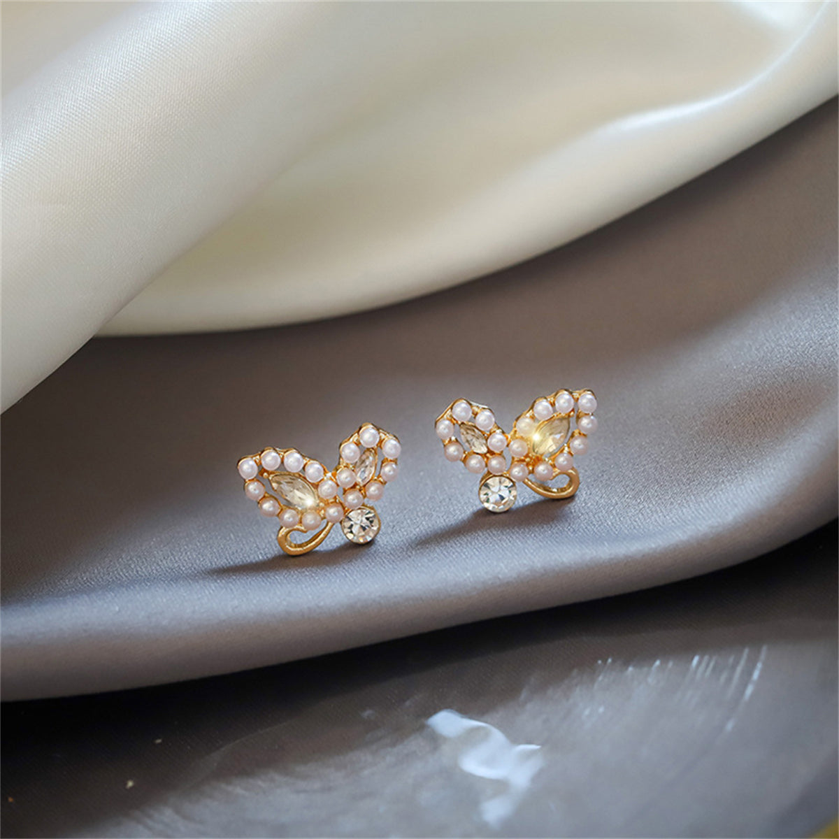 A warm 18k gold-plated setting encrusted with shimmering pearls and cubic zirconia lends light-dancing appeal to your look when you don these stud earrings.