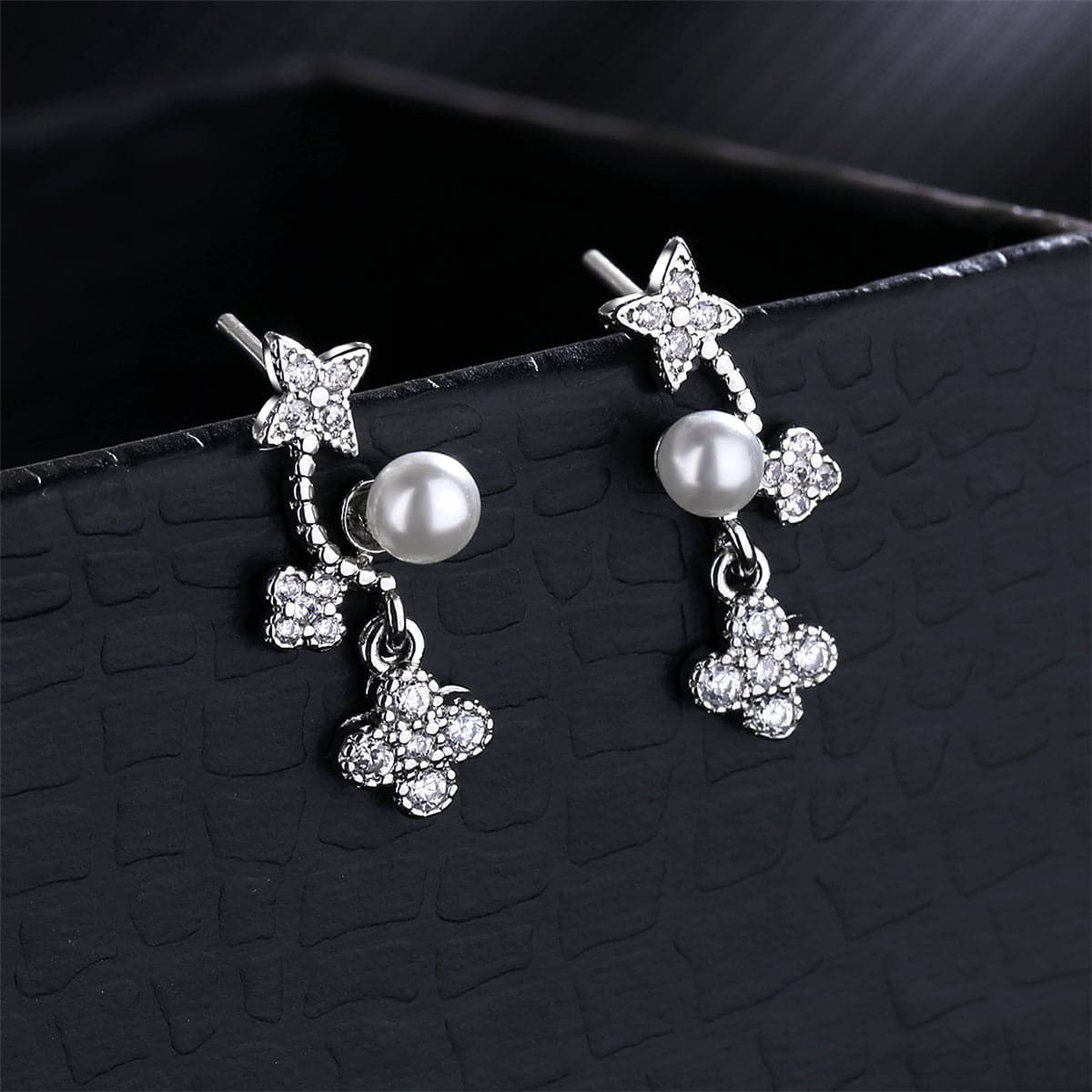 Elevate your ensemble with a dash of glimmer with these silver-plated drop earrings embellished with floral designs adorned with sparkling cubic zirconia and pearls.