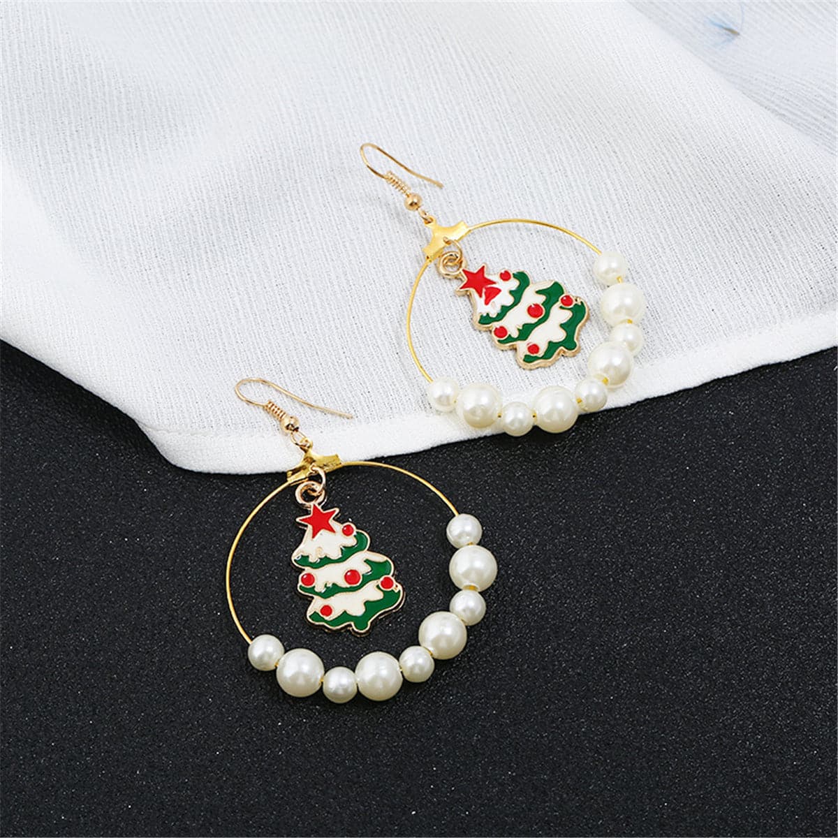 Deck your lobes with boughs of bling with these 18k gold-plated earrings boasting suspended Christmas trees and iridescent pearls for festively fashionable accessorizing.