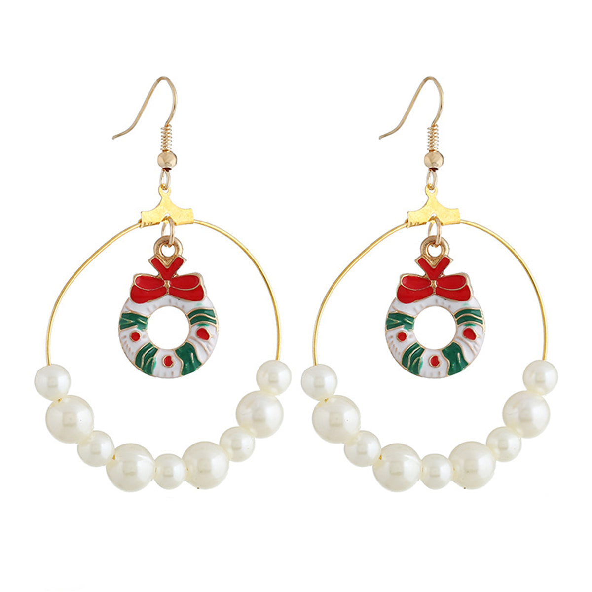 Dangling 18k gold-plated earrings detailed with a festive wreath and pearls.