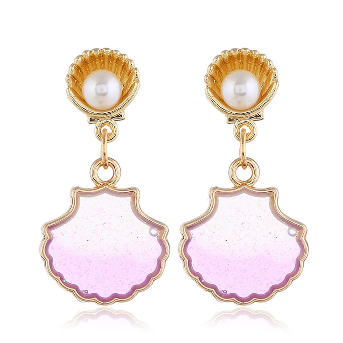 Add a splash of aquatic charm to your under-the-sun wardrobe with these swaying shell drop earrings, decorated with glossy pearls and a glowing 18k gold-plated finish.