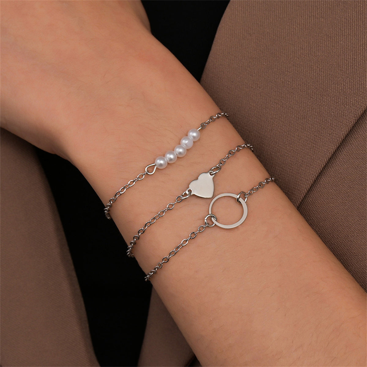 Enhance your accessory collection with our Pearl & Silver-Plated Heart Charm Bracelet Set, created for the contemporary woman who appreciates both elegance and sentiment. This delicate silver bracelet showcases a beautifully designed heart charm and radiant pearls, making it a sophisticated choice for everyday wear or special events. Ideal as a personal indulgence or a meaningful gift, this timeless piece elevates your style while evoking treasured memories. Celebrate love and sophistication with this enchanting bracelet.