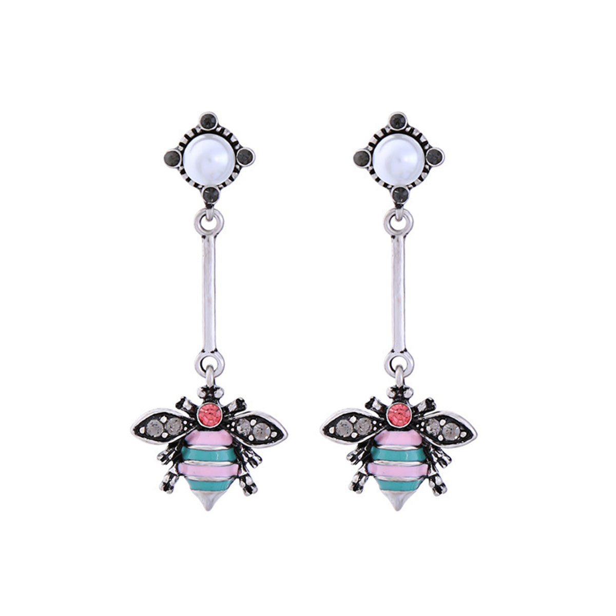 Add a fun twist to your style with these bee-inspired dangle earrings made of pearl and cubic zirconia set in silver-plated.