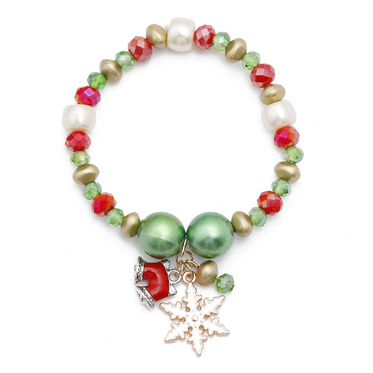 Give your outfit a festive touch with this colorful charm bracelet that features a convenient stretch design.