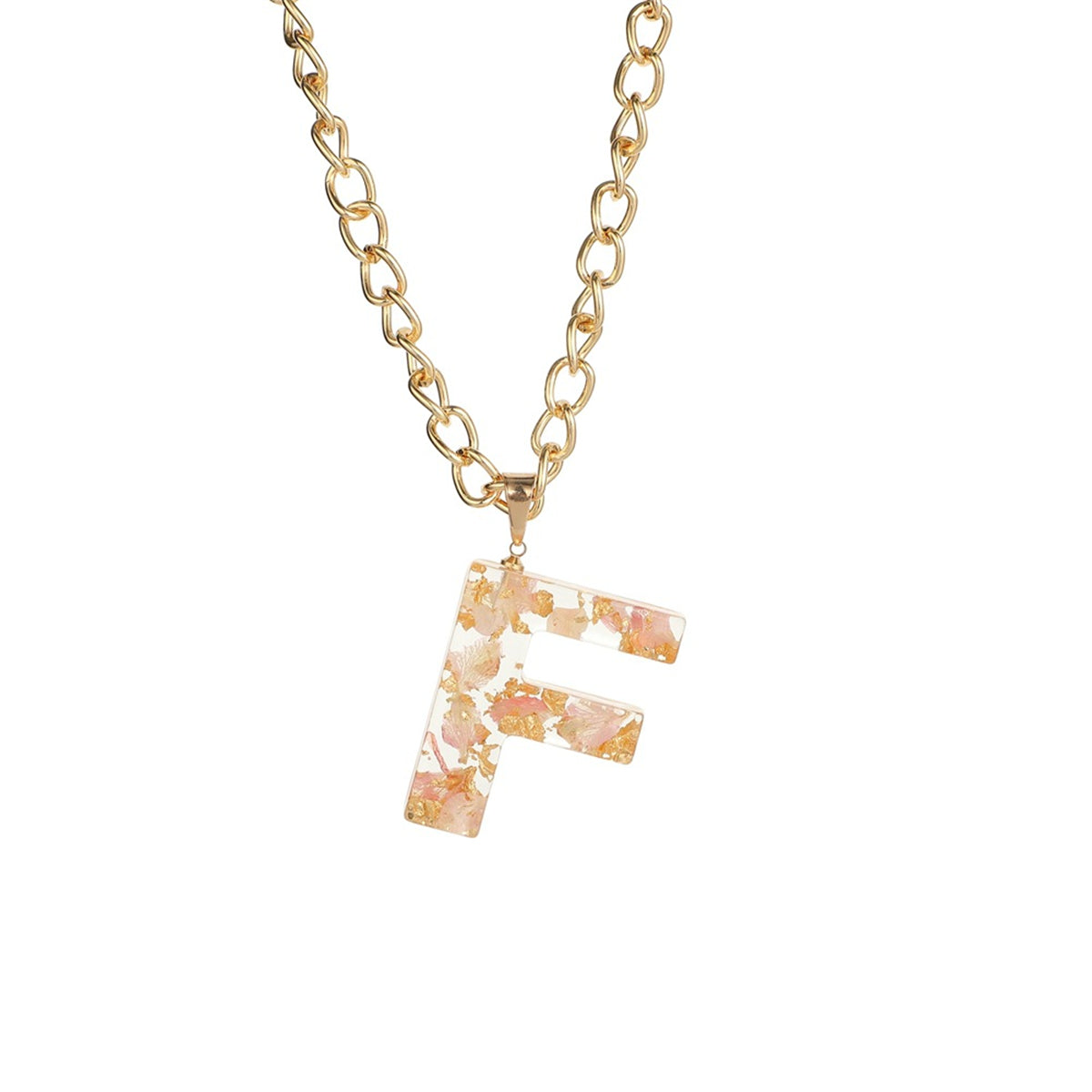 Pink & 18K Gold-Plated Floral Alphabet F Pendant Necklace