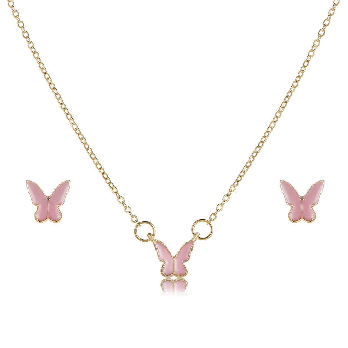 Express your free-spirited nature with this delicate butterfly set showcasing pink enamel and an 18k gold-plated chain.
