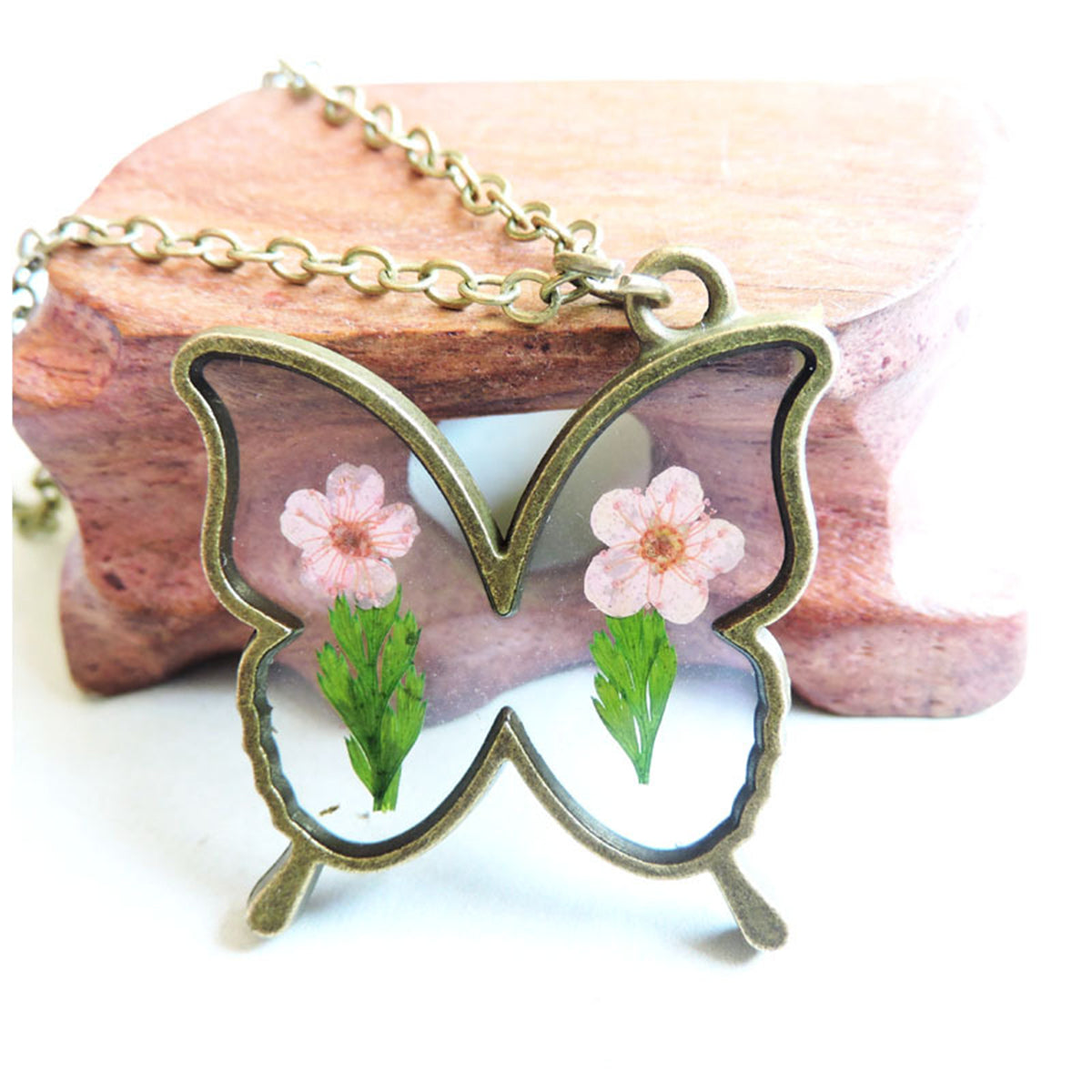 Add a beautiful botanical touch to your look with this necklace featuring a pressed flower pendant set on a versatile 18k gold-plated material.