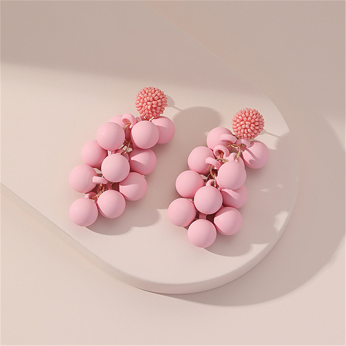 These drop earrings are brimming with quirky style and feature bright pink hues.