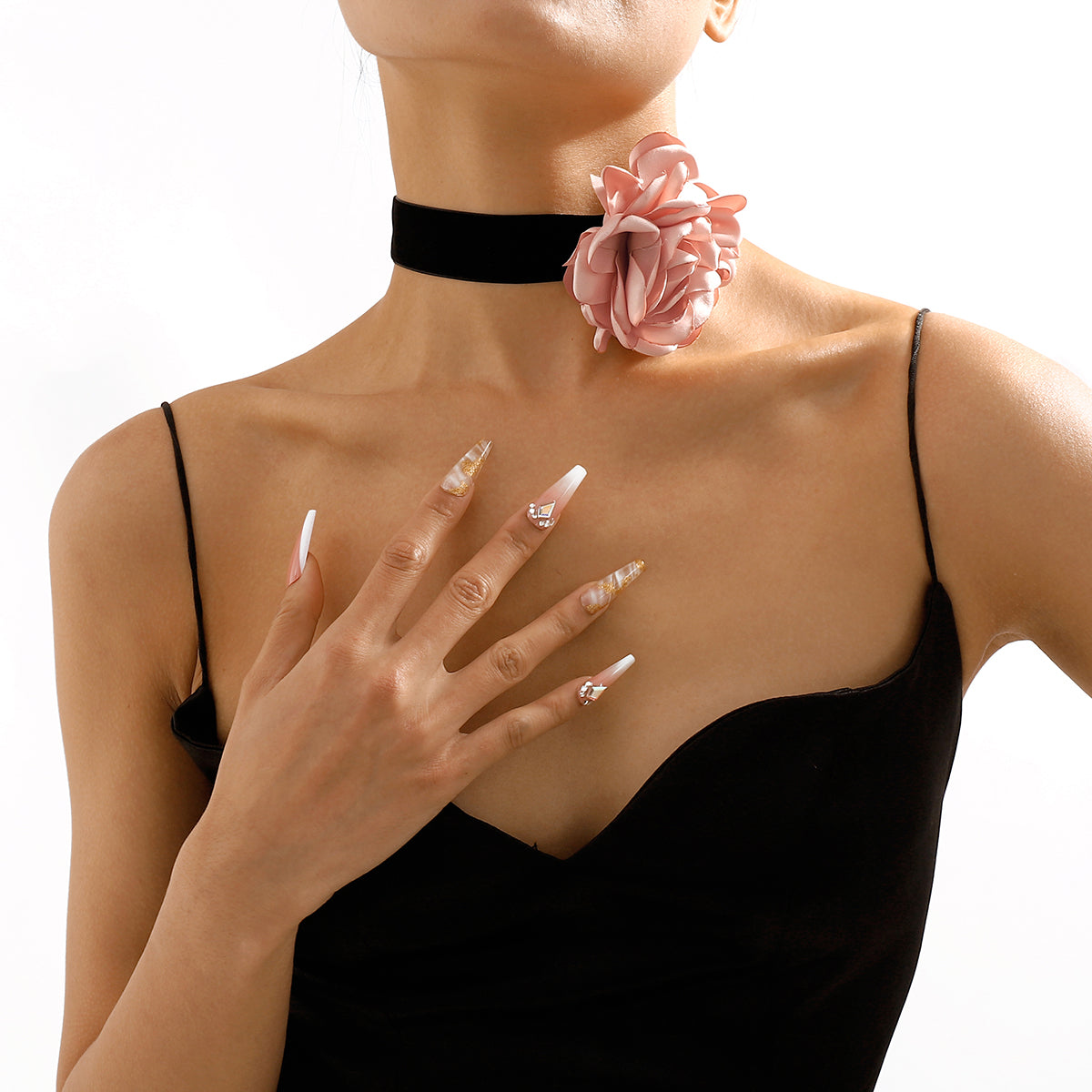 Add drama to your look with this natural-inspired choker necklace that features a bold floral accent.