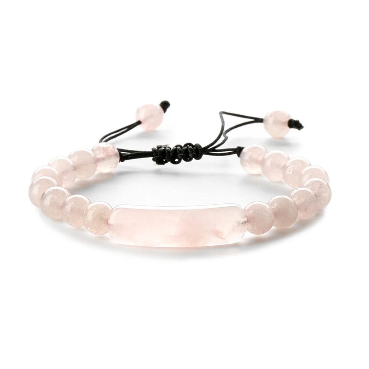 Unique adjustable bracelet crafted from quartz with a curved bar charm and round beads.