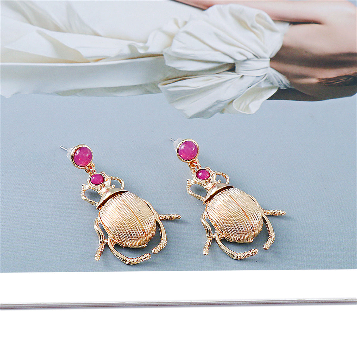 Add playful flair to everyday ensembles with these drop earrings sporting a bright 18k gold-plated finish and unique beetle design.
