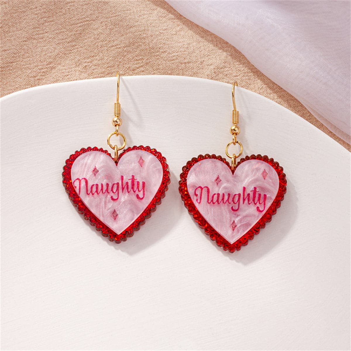 These earrings are crafted into a sweet heart design and feature a sassy saying in the middle.