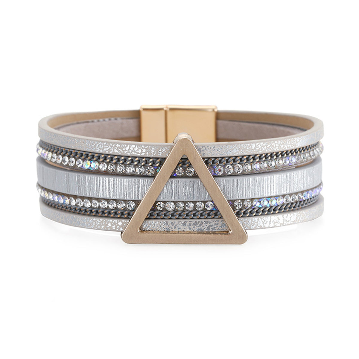 Multi-layered bracelet with contrasting textures and gemstone accents.