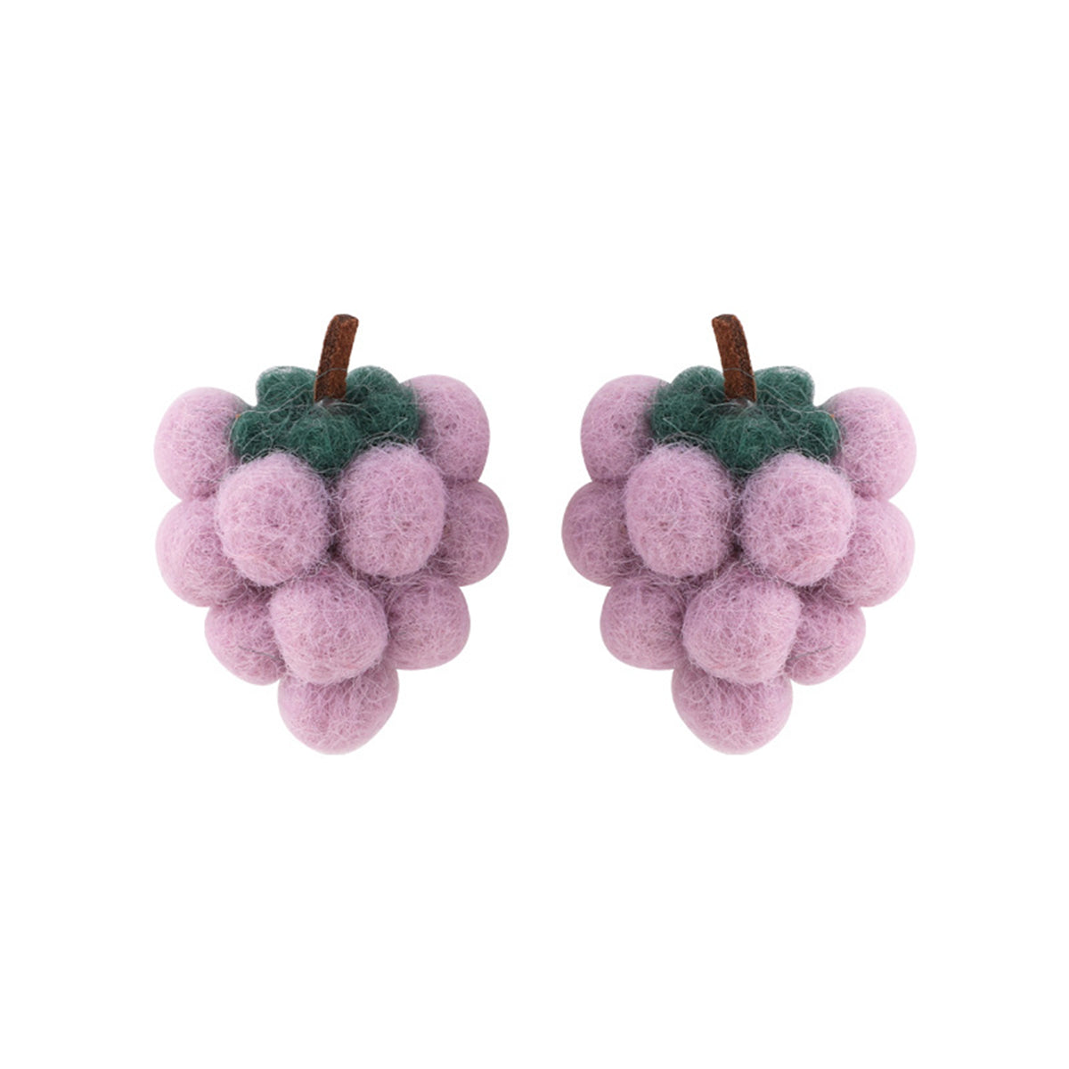 Start raisin your style profile in these whimsical stud earrings featuring a cluster of grapes covered in soft wool.