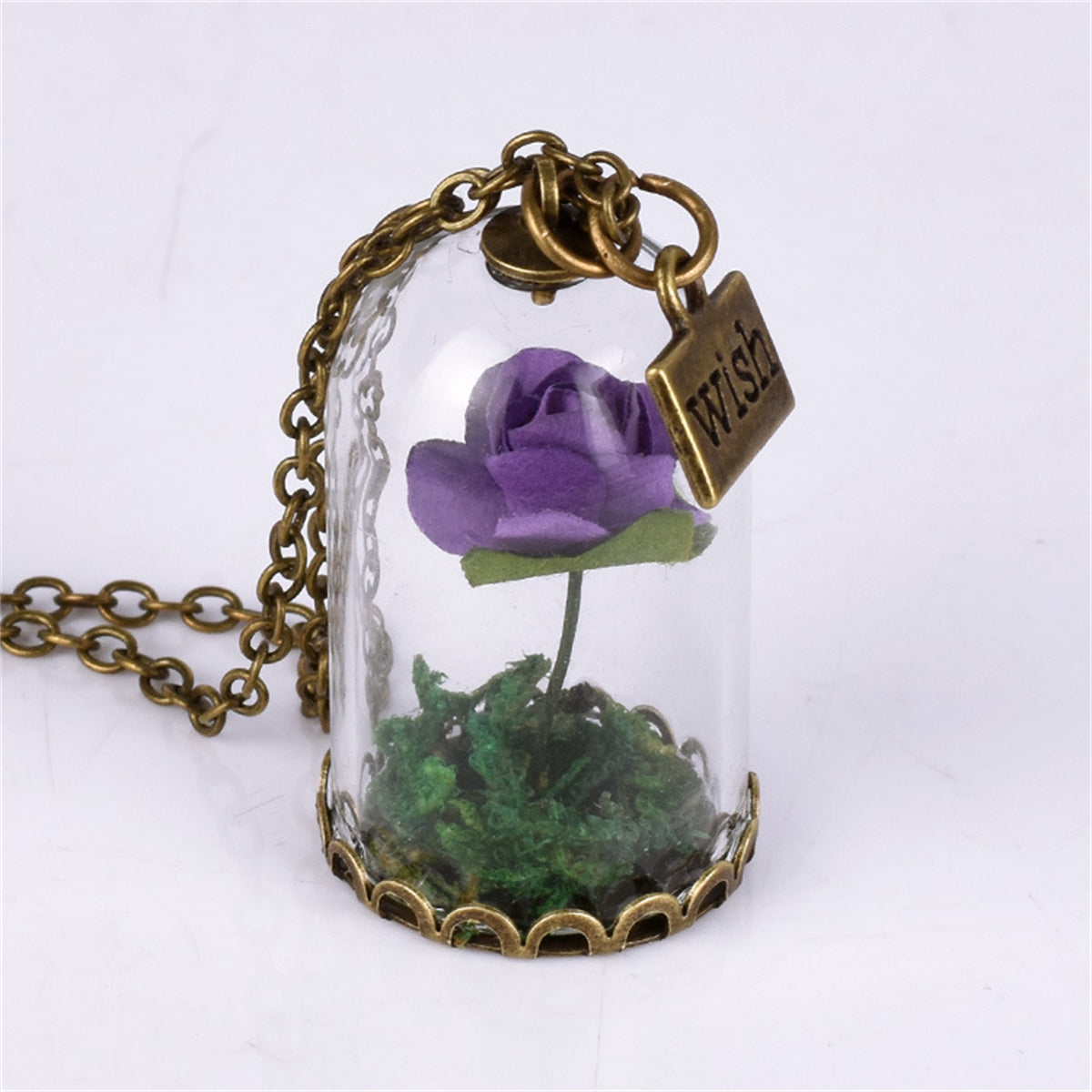 Purple Velvet Rose & 18K Gold-Plated 'Wish' Glass Pendant Necklace