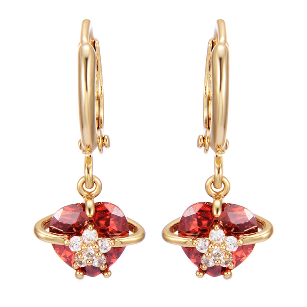 Red Crystal & Cubic Zirconia 18K Gold-Plated Heart Drop Earrings