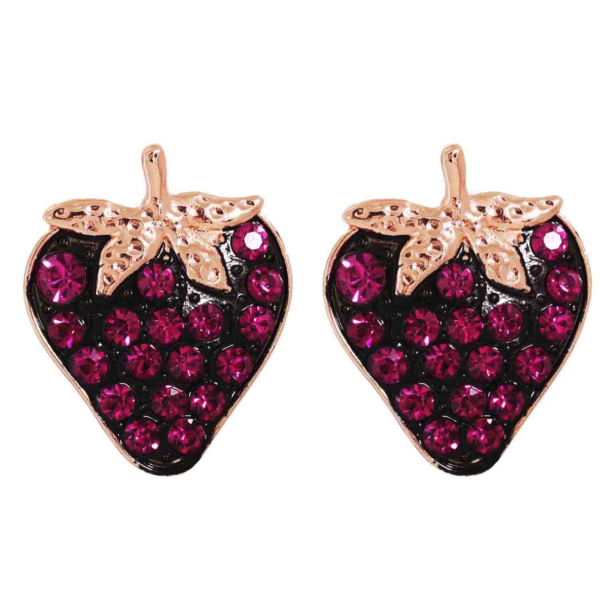 Add sweet shine to your ensembles with these stud earrings showcasing a strawberry design decorated with colorful details.