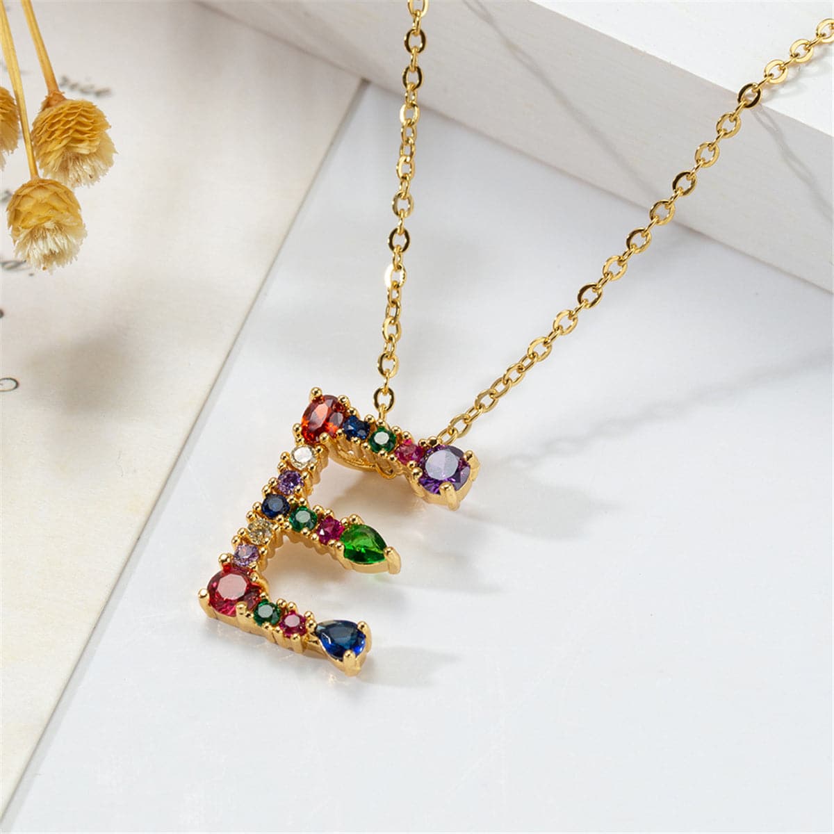 Red Multicolor Crystal & Cubic Zirconia Letter E Pendant Necklace