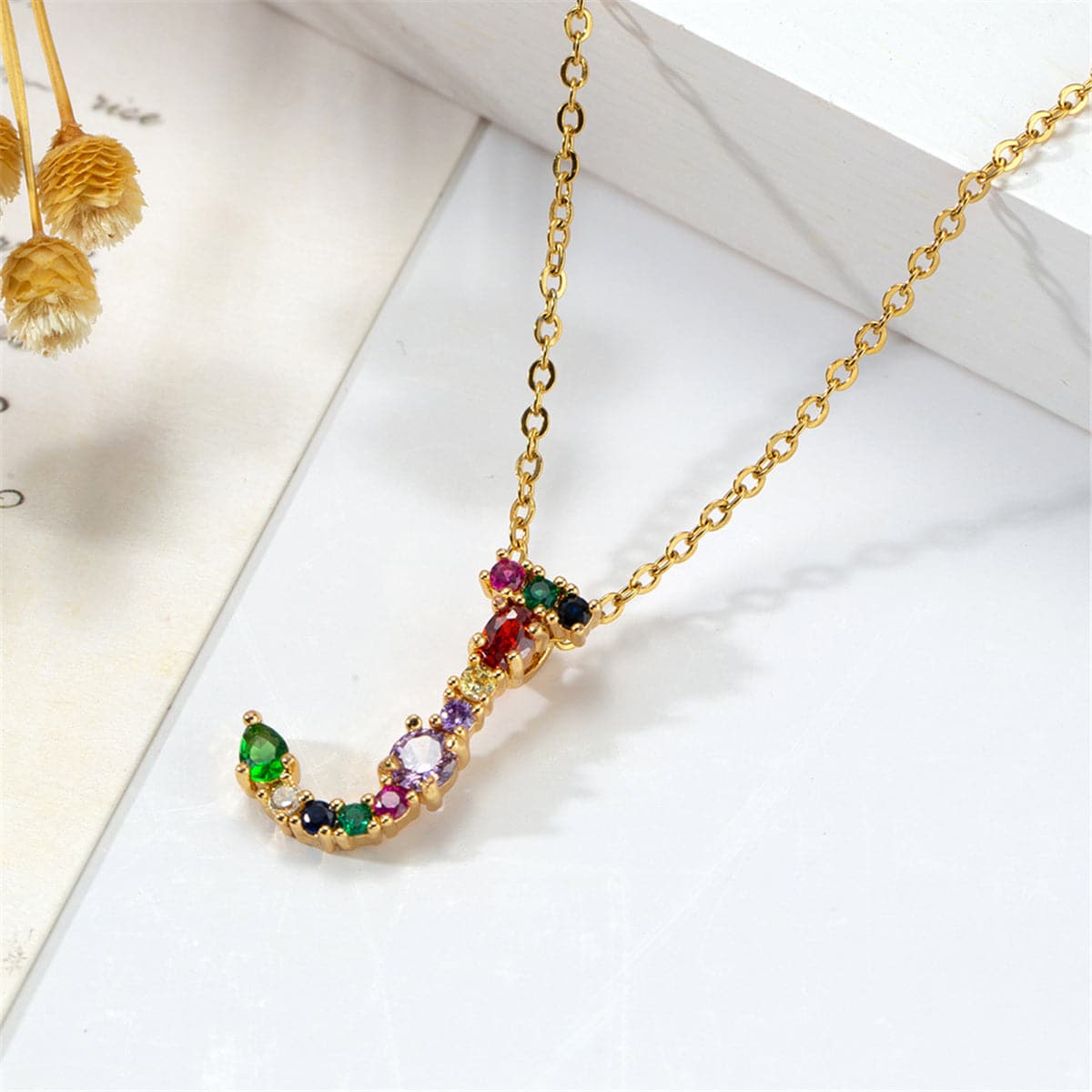 Red Multicolor Crystal & Cubic Zirconia Letter J Pendant Necklace