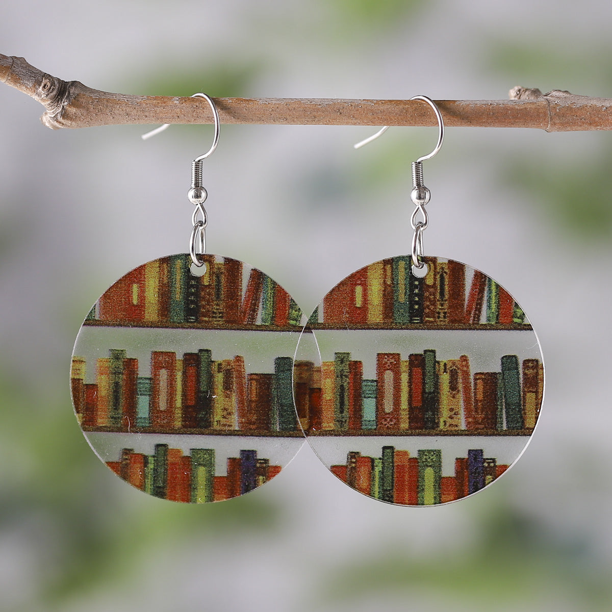 Red & Yellow Bookcase Round Drop Earrings