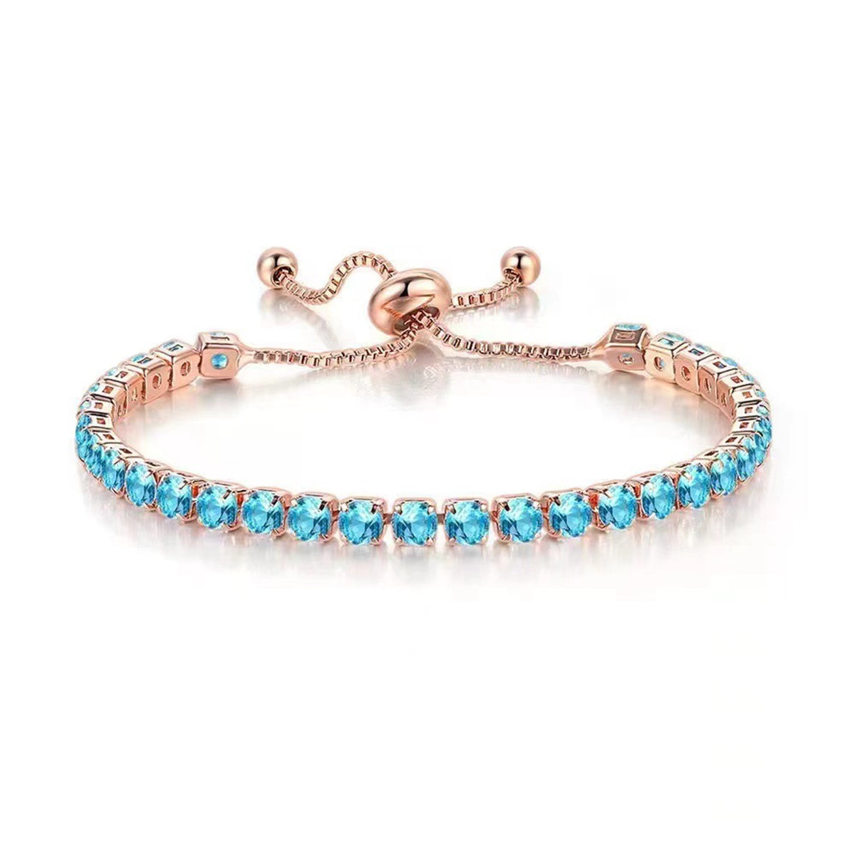 Sea Blue Cubic Zirconia & 18K Rose Gold-Plated Adjustable Link Bracelet