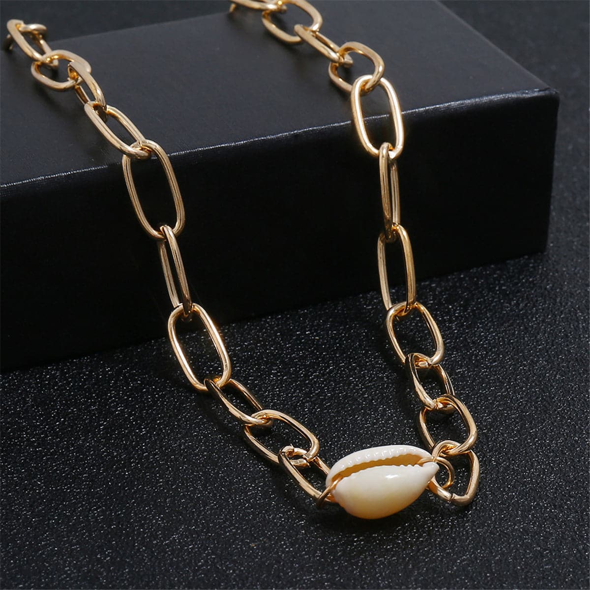 Add a splash of under-the-sea glamour to your coastline-ready closet with this shining chain choker showcasing a glossy puka shell charm.
