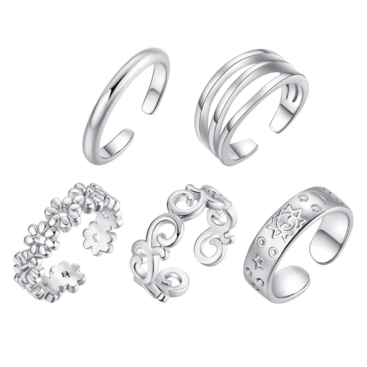 Make your sandal-ready ensembles glisten with this adjustable toe ring set crafted with a gleaming silver-plated finish.