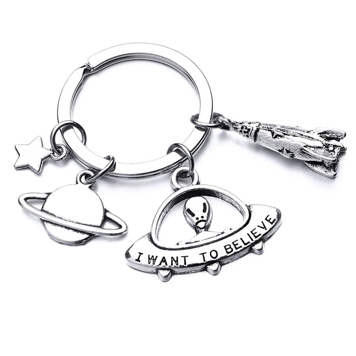 Made from shining silver-plated metal, this alien key chain brings out-of-this-world function to your on-the-go organizing.