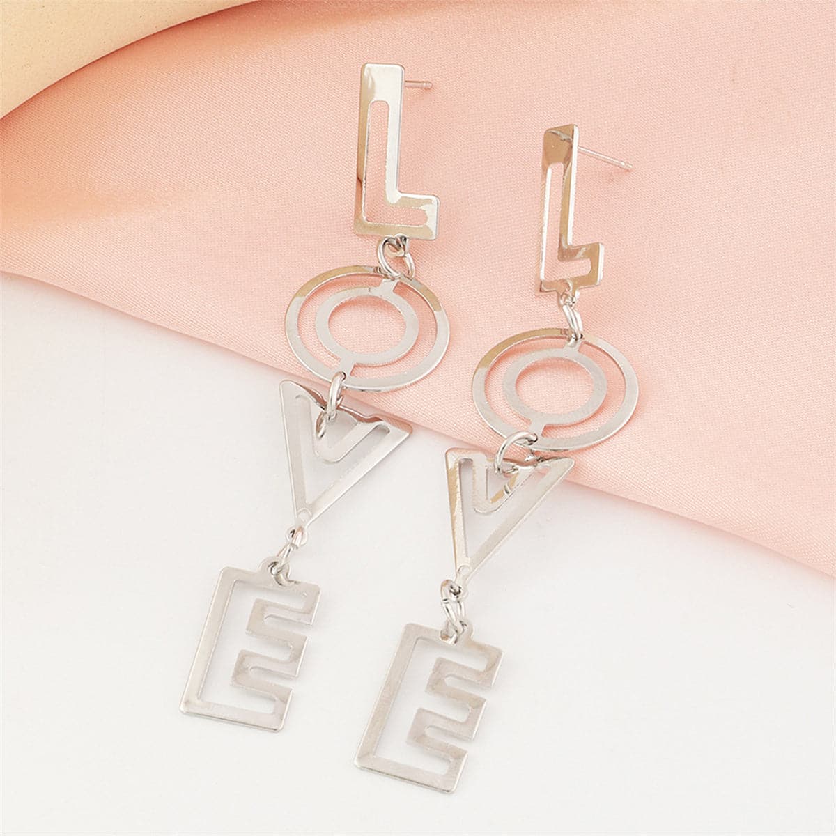 Put an endearing touch on your everyday looks with these silver-plated drop earrings showcasing a tiered-text design and openwork accents.