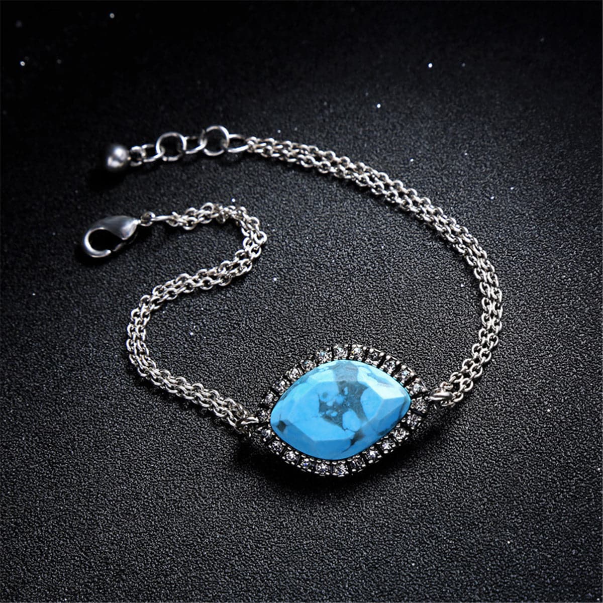 For a boho chic look, don this bold turquoise charm bracelet surrounded by shimmering cubic zirconia.