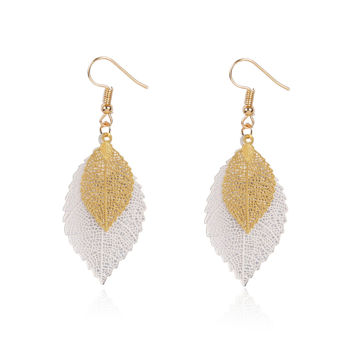 Two-Tone Openwork Leaves Drop Earrings