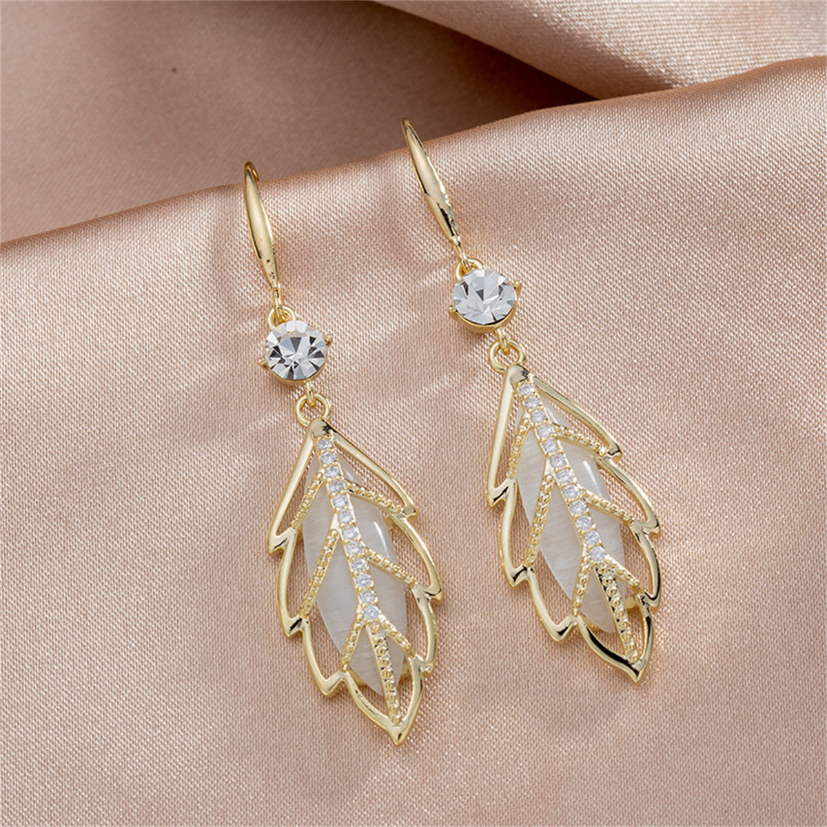 Featuring a cubic-zirconia-accented leaf overlay and dainty marquise cat-eye, these nature-inspired drop earrings make your outfit bloom.