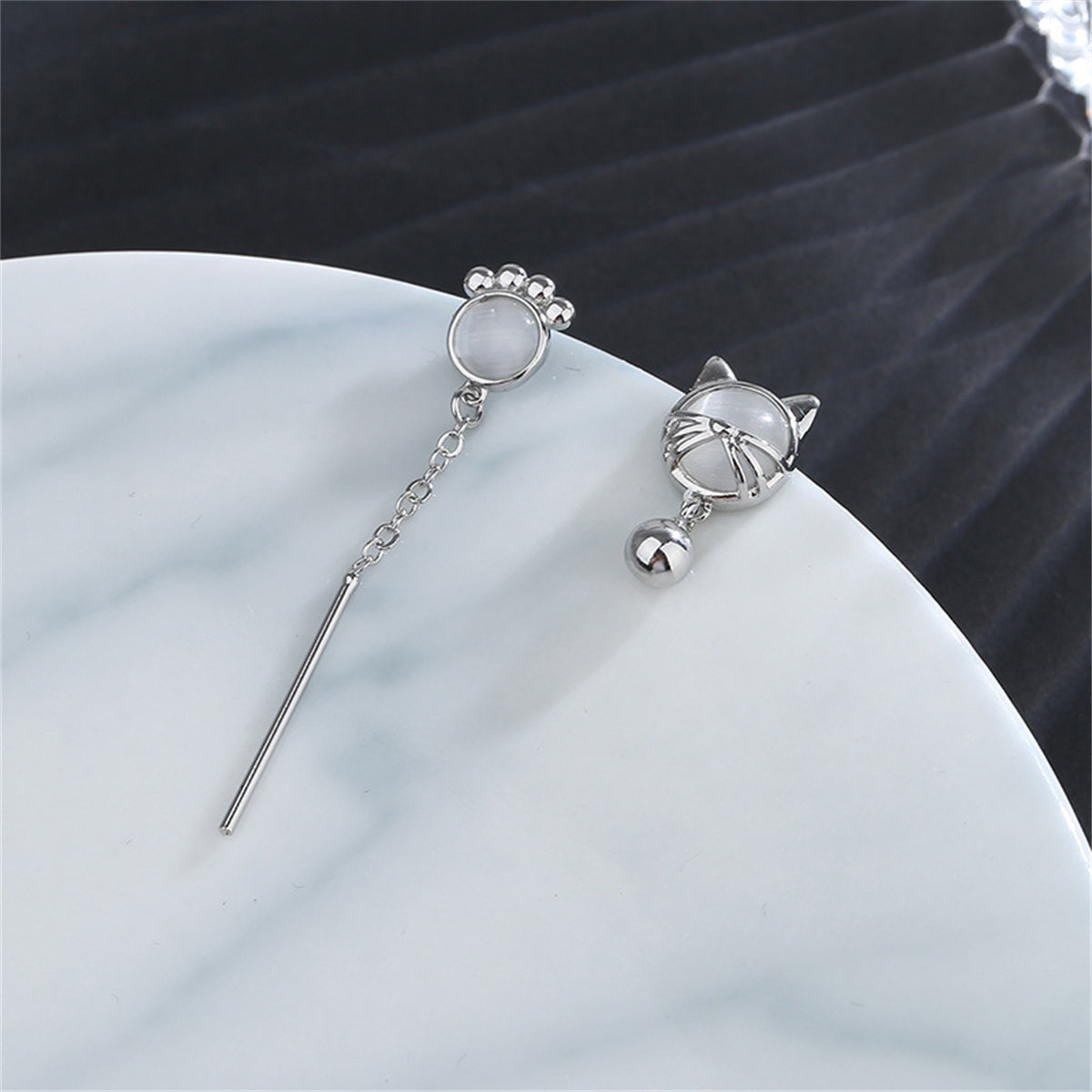 Delicate white cat-eye stones accent these playful mismatched earrings. Crafted in a unique cat-inspired shape and silver-plated finish.