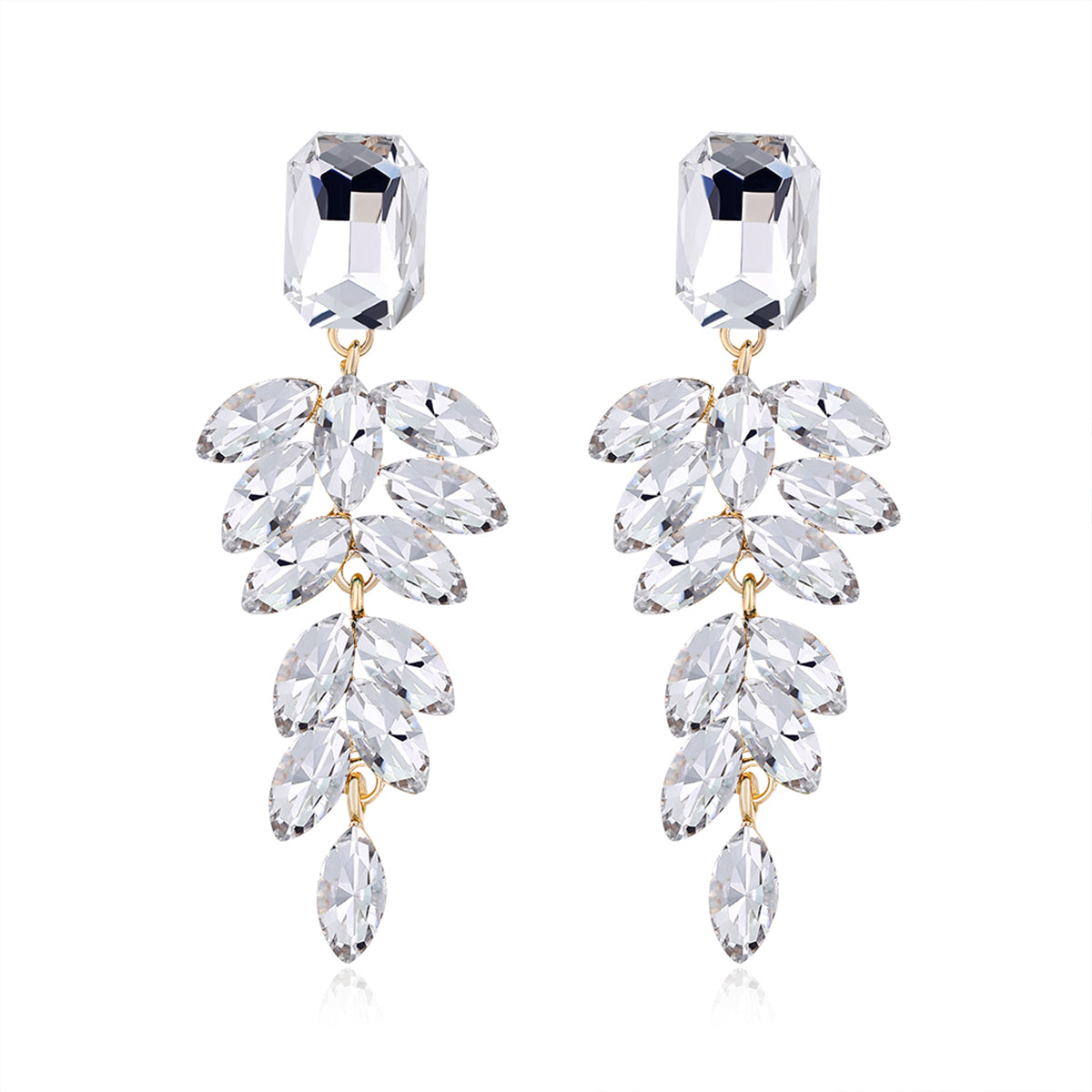 These earrings feature botanical designs crafted from lustrous metal and crystal.