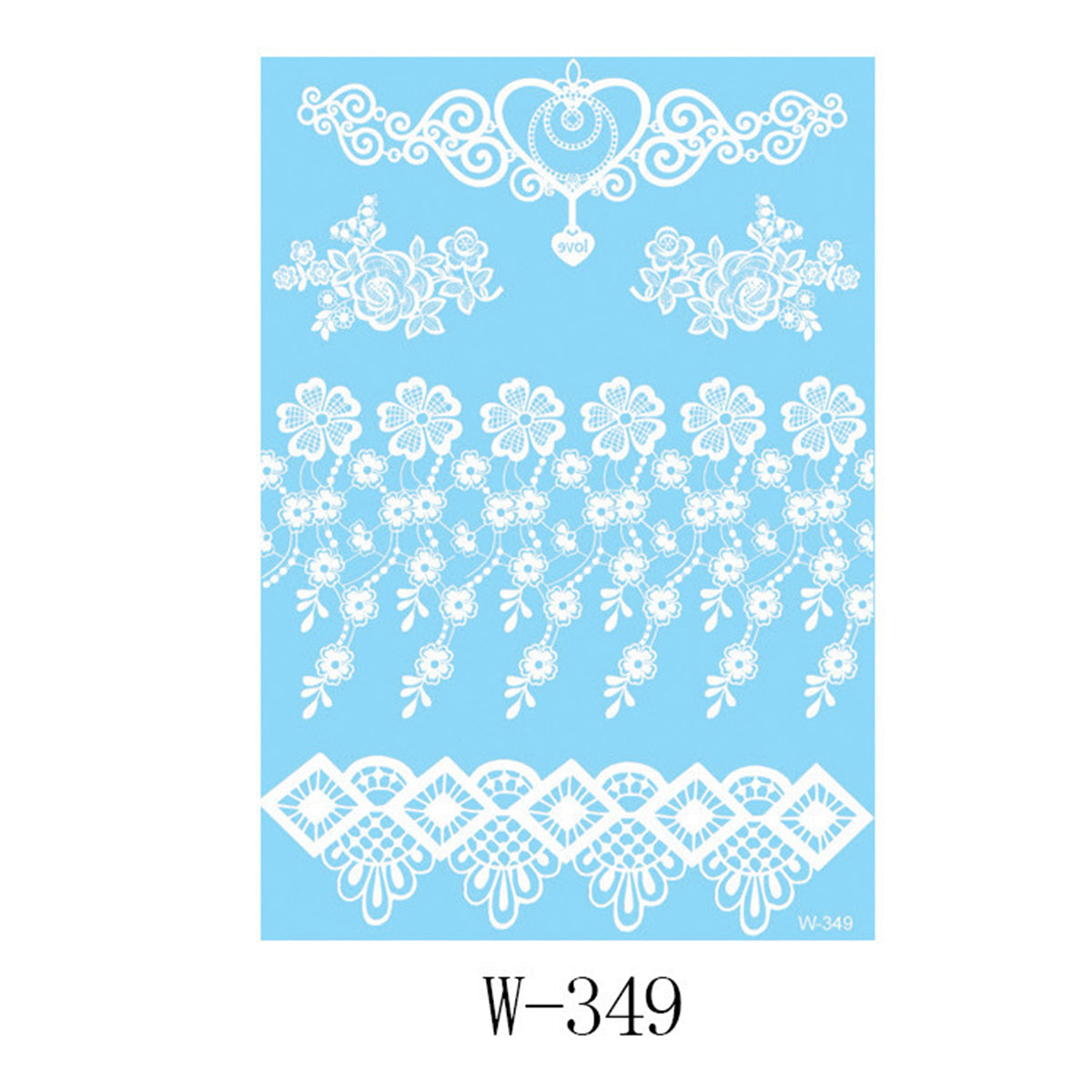 White Lace Floral Heart Temporary Tattoos-Set Of 5