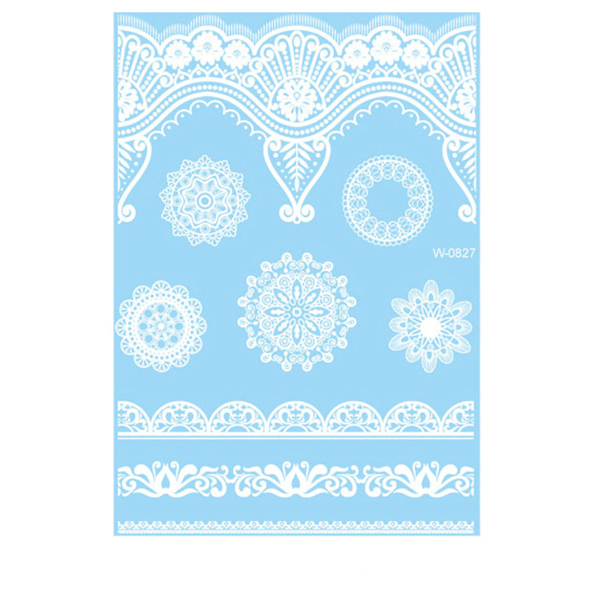 White Lace Flower Plate Temporary Tattoo Sheet - 5 Pcs