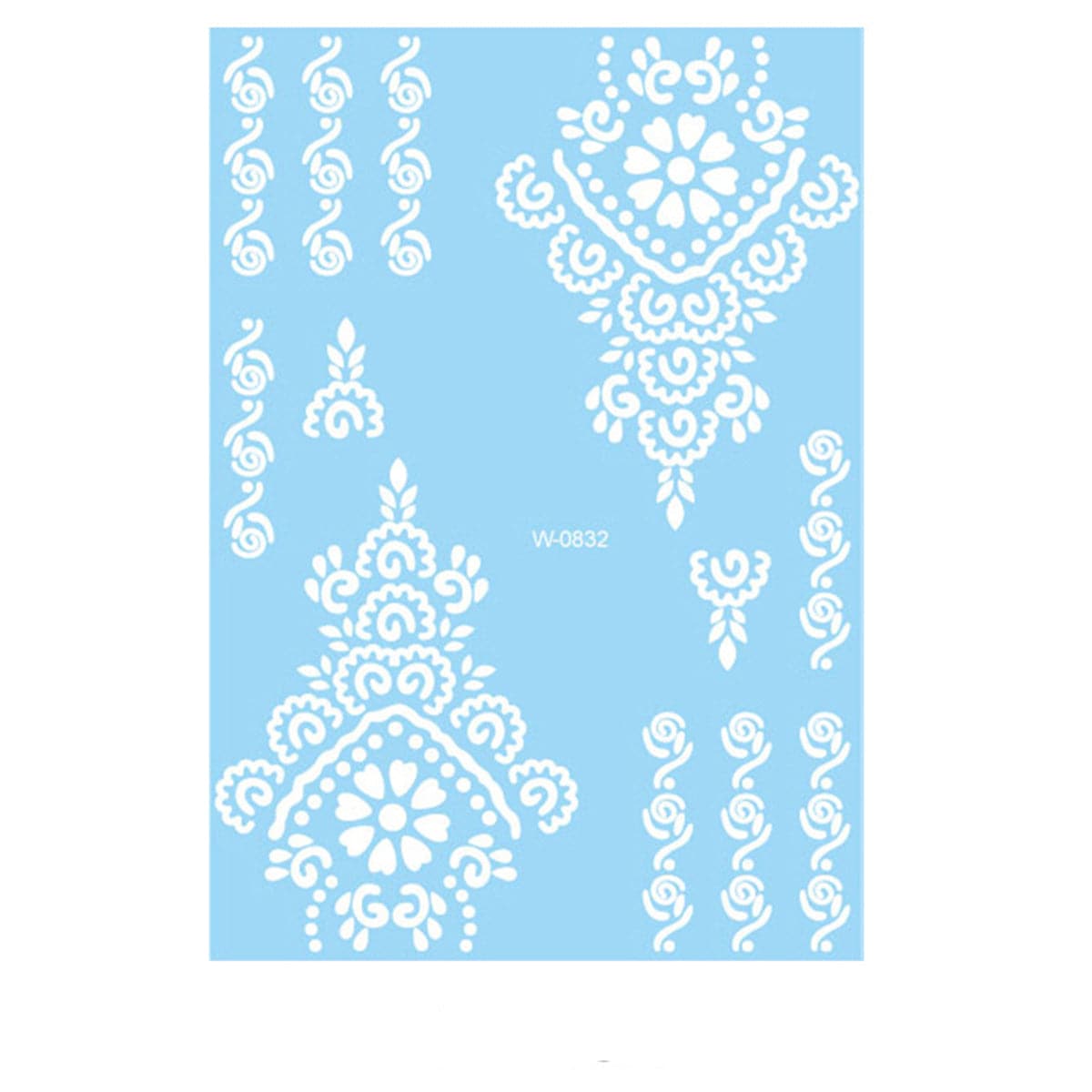 White Lace Heart Flower Temporary Tattoo Sheet - 5 Pcs
