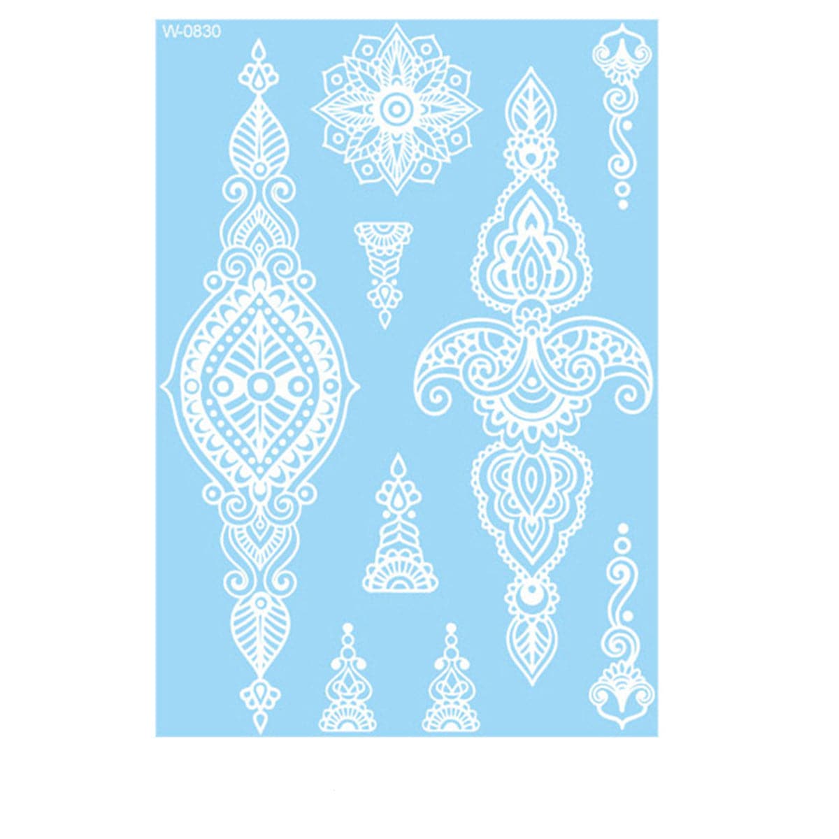 White Lace Paisley Floral Temporary Tattoo Set - 5 Pcs