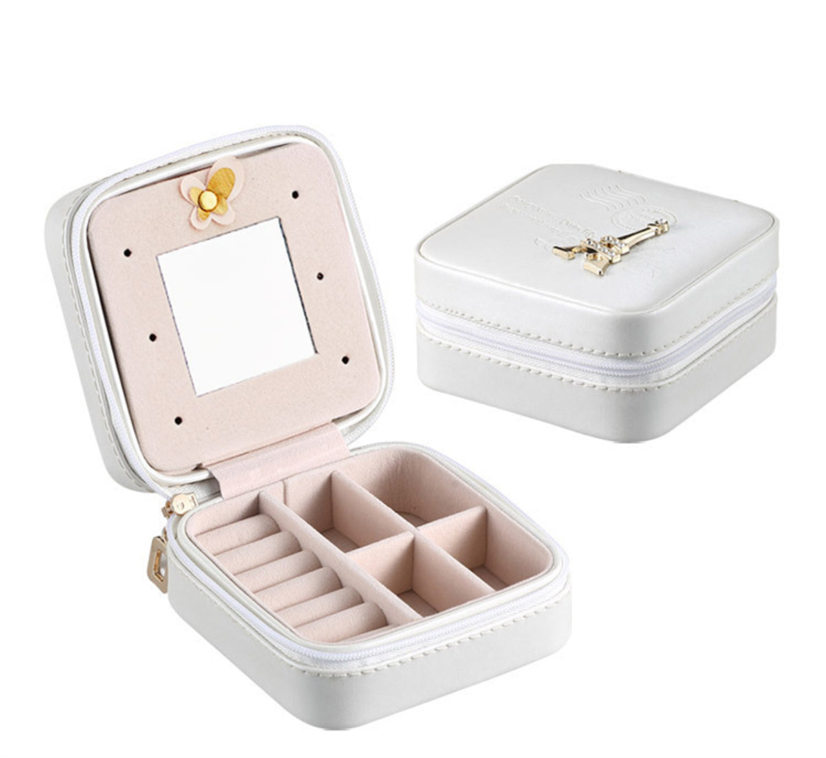 Store your favorite accessories in this tr's chic jewelry box featuring an interior mirror, zip-around closure and a postal stamp-embossed lid with a cubic zirconia-embellished Eiffel tower.
