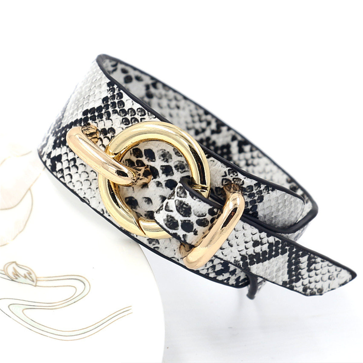 Add a unique touch to your style with this fierce snake print bracelet boasting an 18k gold-plated O-ring accent.