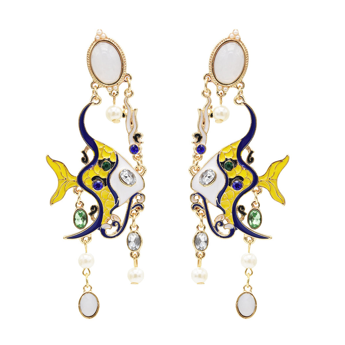 Shiny 18k gold-plated plating trims this statement pair elegantly crafted with colorful and bold enameled.